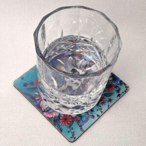 Skull with Colorful Flowers – Wooden Cup Coaster