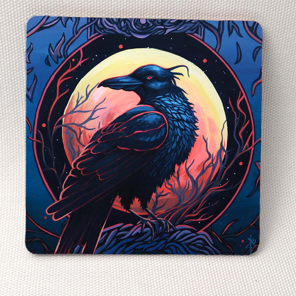 Coaster with a design transferred from my original, hand-painted artwork onto wood using the decoupage technique.