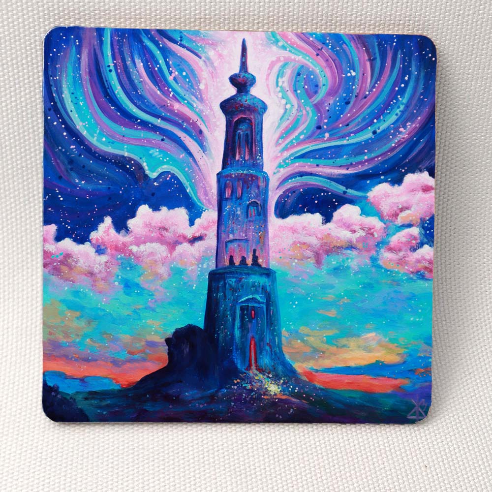 Mage’s Tower and Colorful Spells – Wooden Cup Coaster