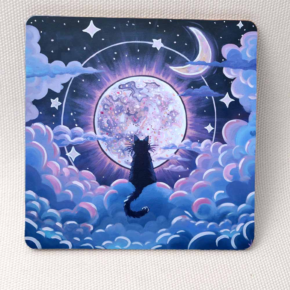 Cat’s Lunar Violet Guard – Wooden Cup Coaster